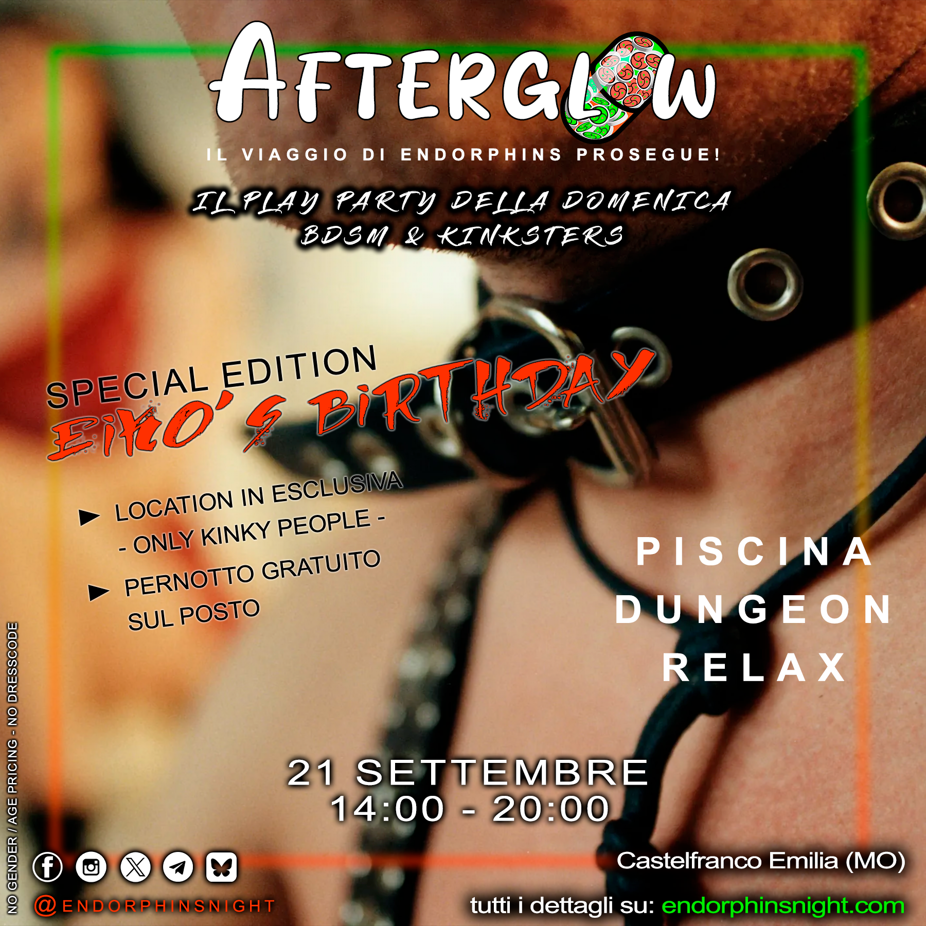 Pensato sia per chi ha già vissuto l’Endorphins del sabato sera, sia per chi desidera regalarsi una domenica pomeriggio tutta da godere. È il momento ideale per far decantare le emozioni intense della notte precedente, approfondire le amicizie nate e crearne di nuove.
