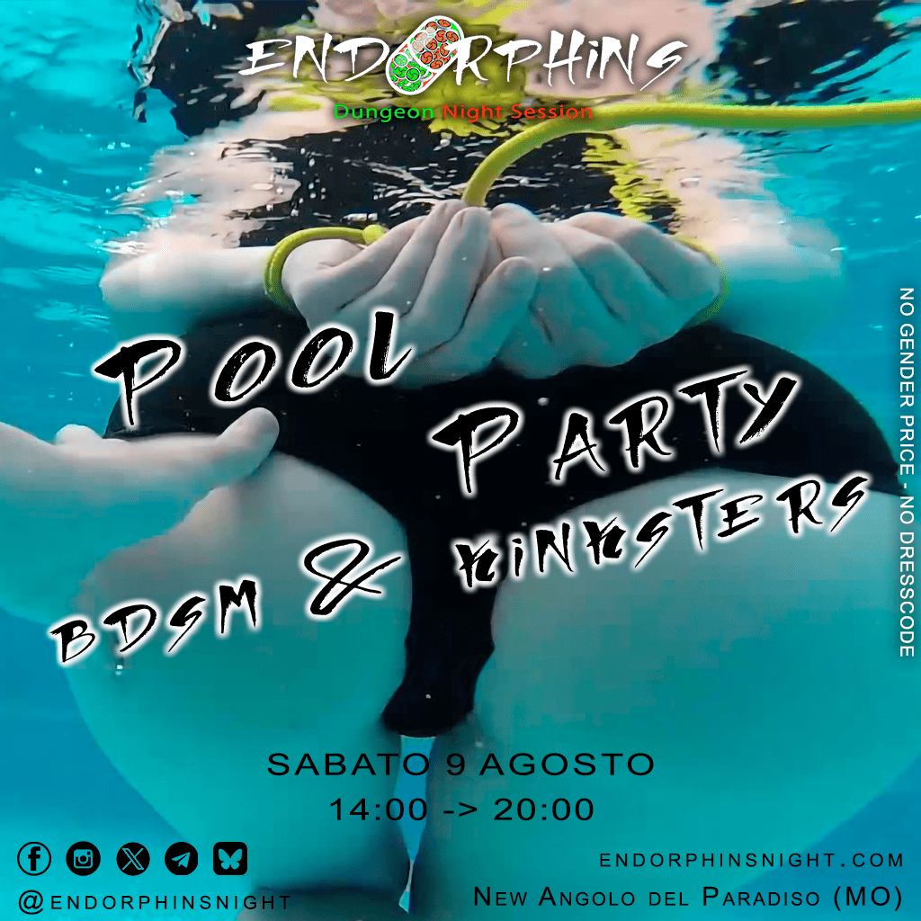 Endorphins non è solo un party: è un viaggio sensoriale in cui il confine tra mente e corpo si dissolve, lasciando spazio alla pura intensità dell’esperienza. Qui ogni gesto ha un significato, ogni tocco una promessa. Che siate Dom, sub, switch o semplici curiosi, troverete uno spazio sicuro, rispettoso e liberamente consapevole per esplorare ciò che vi accende davvero.